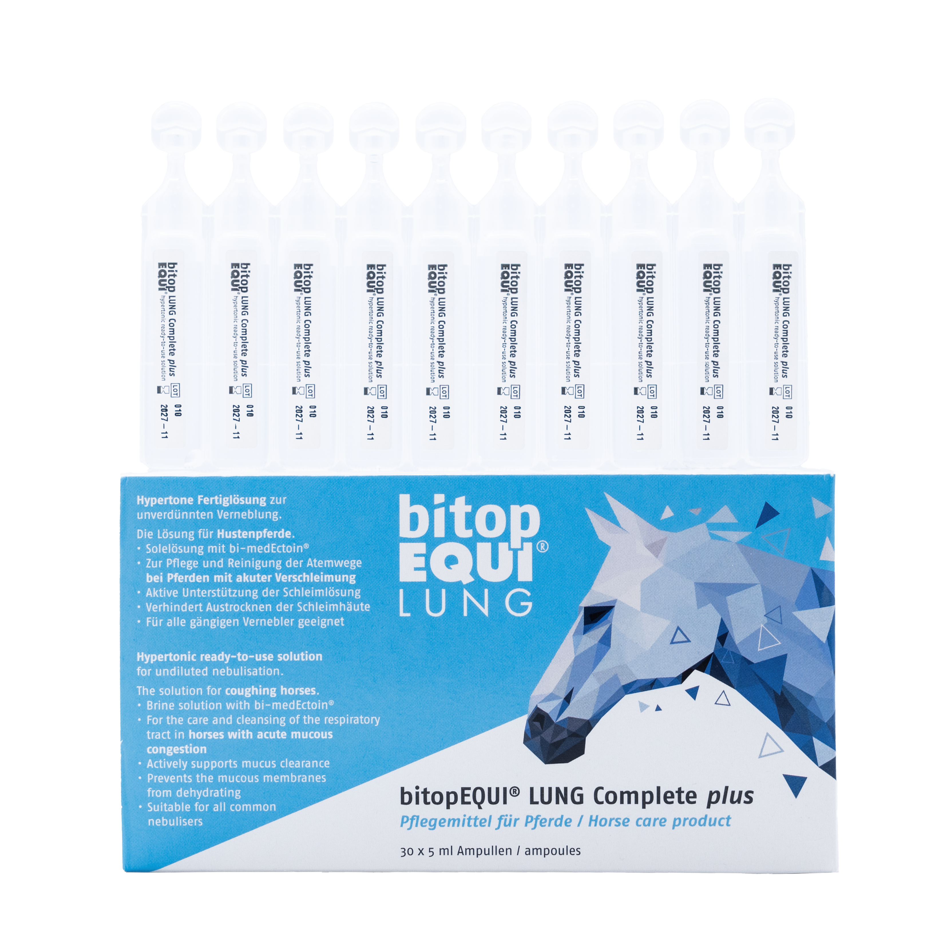 bitopEQUI® LUNG Complete plus unterstützt die natürliche Reinigungsfunktion der Atemwege, speziell für Pferde mit einer starken Belastung - etwa durch vermehrte oder anhaltende Schleimbildung.