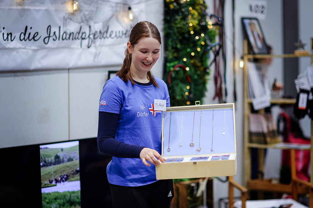 - Spannenden Vorführungen im Aktionsring, darunter „Faszination Islandpferd“ vom IPZV, „Dressur mit Islandpferden“ mit Sarah Seifert sowie „Gelassenheitstraining im Messeumfeld – Katja Schnabel trifft Sarah Seifert“