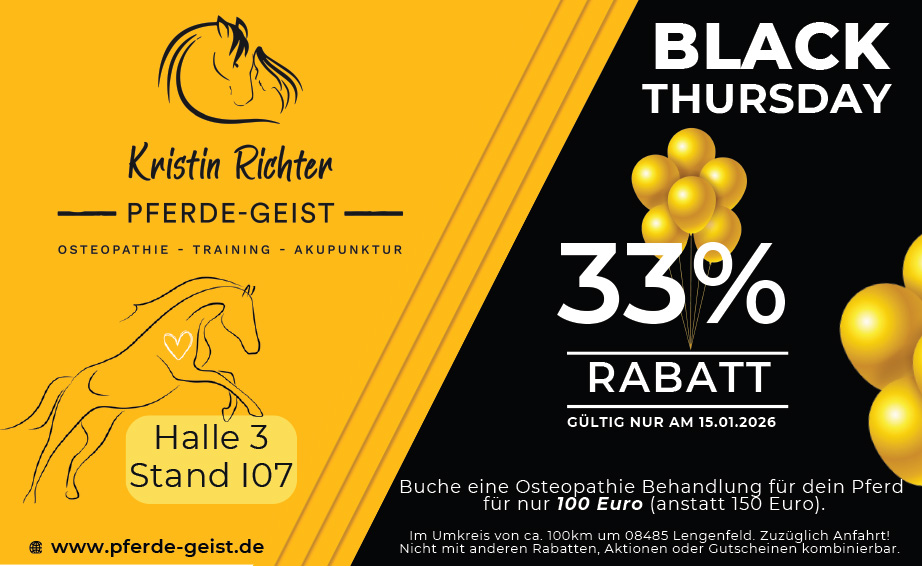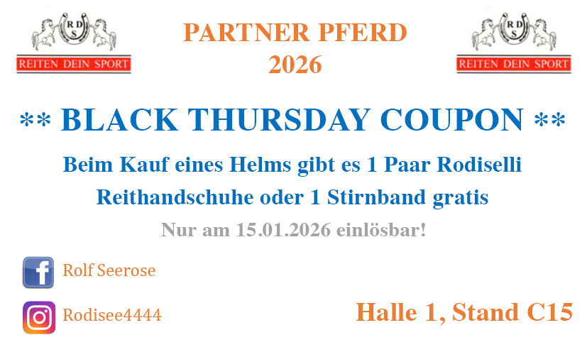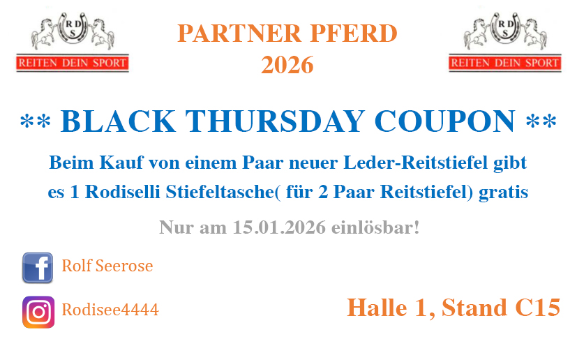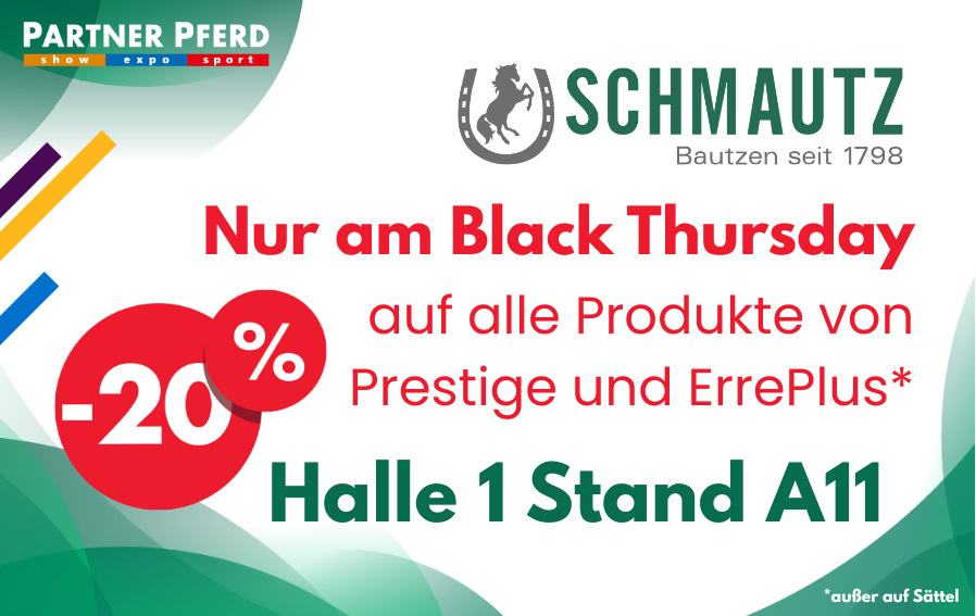Whether it’s exclusive discounts, small giveaways, or special promotions – on Black Thursday, our exhibitors at PARTNER PFERD will be offering a wide range of deals for a truly enjoyable shopping experience.