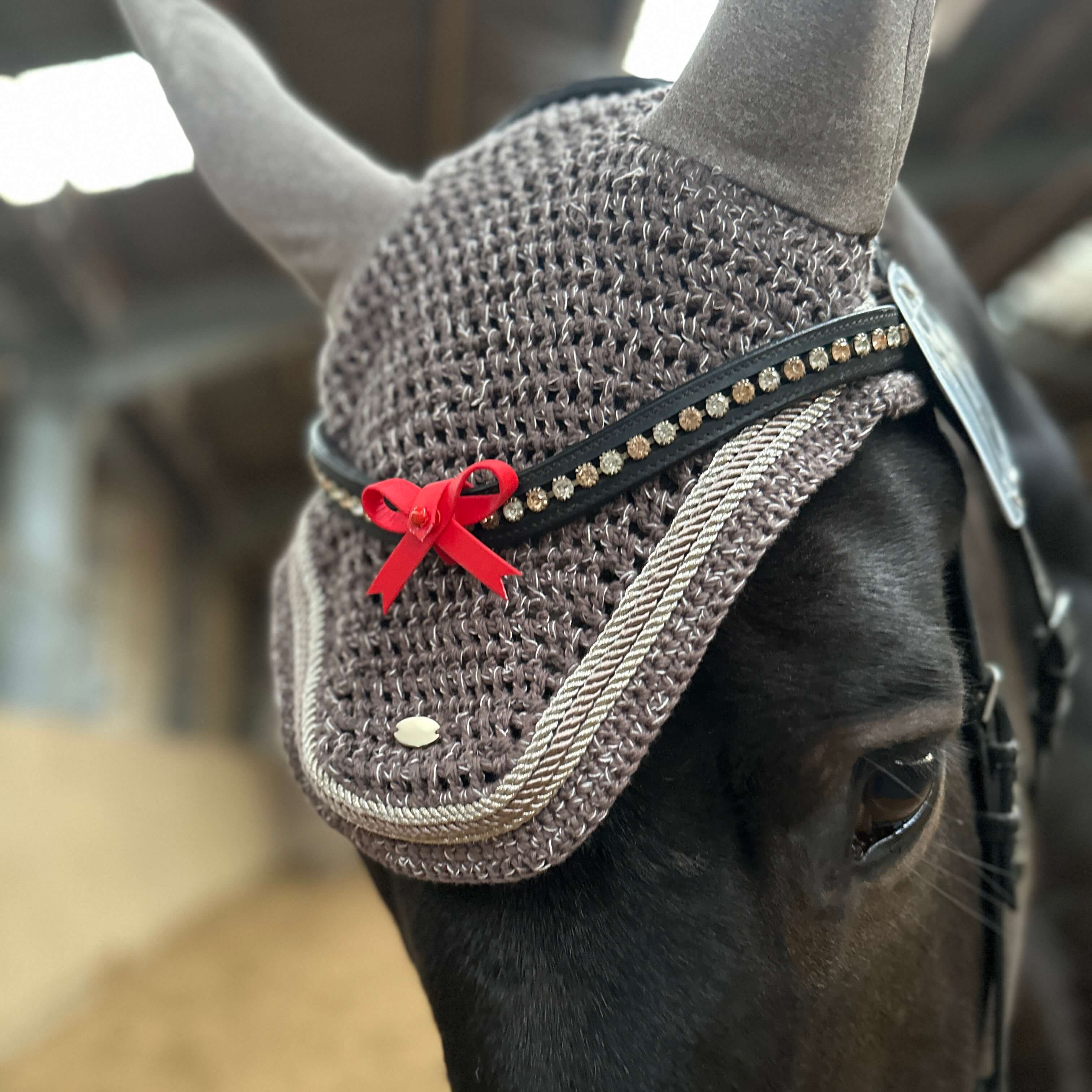 Highly visible ribbon made of bright red Biothane, which is weather-resistant and easy to clean. Easy to attach to the browband – can be attached in three seconds and always fits perfectly!